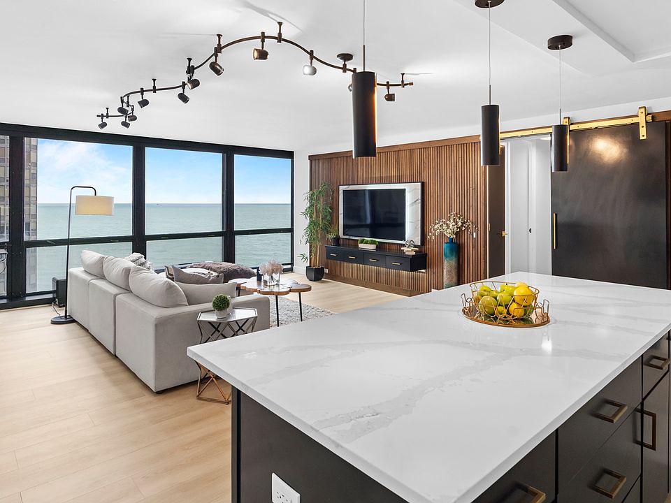 Sleek finishesOverlooks lake michiganFloor-to-ceiling windowsOpen-concept layoutAbundance of natural lightModern home