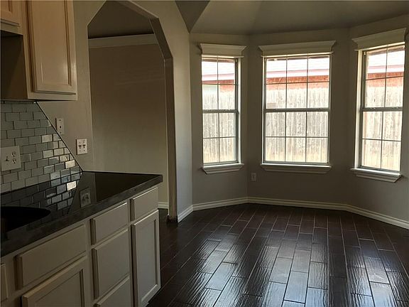 Nice floor plan - spacious living room - kitchen has gas stove, refrigerator, good cabinet storage & counter space. Painted cabinets, new interior paint, hard surface flooring! spacious bedrooms, ceiling fans, tile granite counters, large walk in closets, great utility room- side entry garage. Huge back yard, storage shed- play fort- covered patio - wood fence in back and black fence in front.