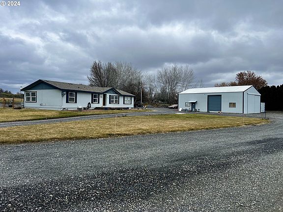 Welcome to country living at its best! This wonderful small acreage property in a picturesque setting features a 3-bedroom, 2-bath open-concept home with newer AC, large windows, vaulted ceilings, nice architectural features, and a great floor plan. Outside you?ll find new fencing and a 1440 (+/-) square foot insulated shop with a storage room upstairs and a separate, heated office boasting a half-bath and kitchenette. For added convenience, there's an RV hook-up and dump site next to the shop. Enjoy low-cost irrigation rights through the Stanfield Irrigation District and easy access to the freeway, Hermiston, and Pendleton area from this wonderful countryside location. Don?t let this great opportunity pass you by!