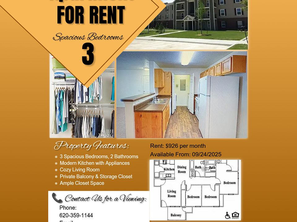 Experience the best of Wilhoit Properties at Wedgewood Apartments in Wellington, Kansas. The 40-unit community features 2 and 3-bedroom apartments with fully-equipped kitchens, full-size washers/dryers, ceiling fans, and private patios/balconies with additional storage. Residents of this pet-friendly community enjoy the clubhouse, fitness center, business center with computers, outdoor playground with tot lot, and barbeque area with picnic tables. Wedgewood participates in the Housing Choice Voucher Program, designed to maintain affordable housing for residents. Wedgewood Apartments is the perfect place to call home! Looking for affordable living in Wellington? Welcome to Wedgewood Apartments, where comfort meets convenience. Our 3-bedroom 2-bathroom units offer 1188sqft of space complete with fully equipped kitchens and walk in closets, for just 926 Per month. We cover water, trash, and sewer. Plus, we're just minutes from shopping, schools and more! Right Now, take advantage of our special- 1st month rent is free (10/01-10/31) and half off the security deposit. Income restrictions apply