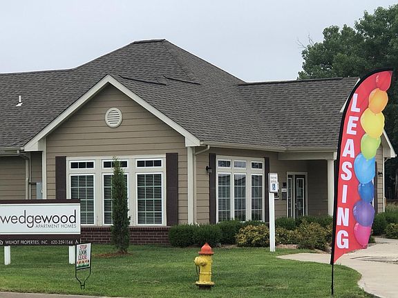 Welcome to Wedgewood Apartments in Wellington, Kansas. Our family friendly 40-unit community was designed to provide modern housing alternatives at affordable rents and participate in The Housing Choice Voucher Program. Our 2 and 3 bedroom floor plans are equipped with ceiling fans, full size washer & dryers, fully-equipped kitchens and patio or balcony. Resident privileges include clubhouse with business center, children's playground with tot lot and BBQ area with picnic tables. Water, sewer and trash are included. Resident is responsible for electric. We require a $200.00 pet deposit per pet. We allow up to two pets under 30lbs, over 5 months old and potty trained.