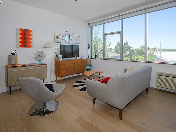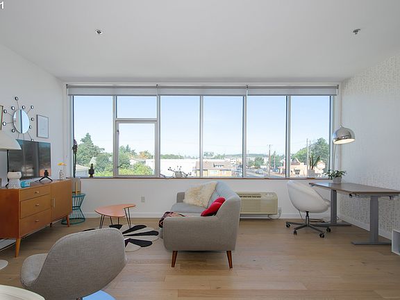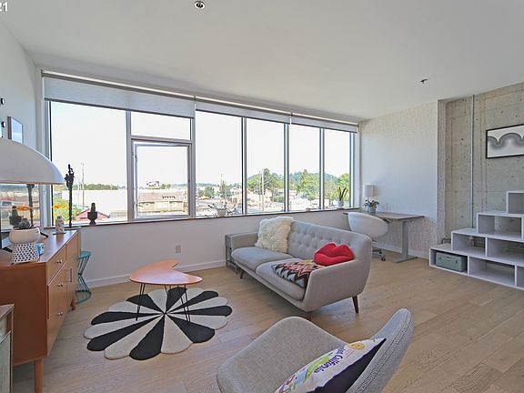 Rare Corner Unit Studio at the Lofts at Milepost 5 Condominiums. Step into a bright, open living space with large windows that cast light through the open floorplan.Modern design, tall ceilings,wallpapered accent wall and hard wood flooring.The kitchen includes all appliances and open shelving and bar/table.Flourishing art community with communal spaces and gallery,Shared rooftop deck w/ stunning views,Community garden,indoor bike parking,laundry facilities.Deeded basement storage space.