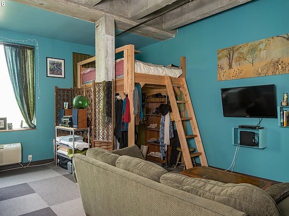 Another great opportunity to own at Milepost 5. Unit includes custom built-in sleeping loft and wall mounted TV. Milepost 5 Lofts: an established community of creatives and artists. Rentable studios, community garden, roof top deck, shared shop, art galleries, coffee house and event space. Unit comes with deeded storage space. OPEN HOUSE SAT 5/14, 1-3.
