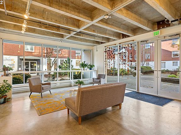 True live/work studio at Milepost 5, community for creatives. Live there. Run your business there. Do both. Corner unit with views of Mt Hood and Rocky Butte. Comes with deeded storage. Indoor bike parking. Community roof top deck and community garden. Conveniently located a few blocks from MAX stop. Close to cafes, restaurants and boutiques both on NE Glisan and NE Stark St.