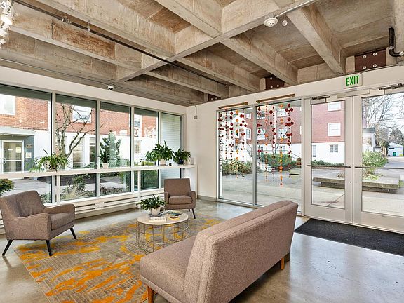 Loft Lounge vibes with big bright windows all dialed in and ready for you! Entertain on the rooftop deck, dig the community veggie garden, bop across the street to a park & public pool. Mainstreet Montavilla beckons! Public transport is practically out your door. Deeded storage, plus bike storage! Originally designed as an affordable live/work space for artists, this community is now available to the creative in all of us. Come get inspired!