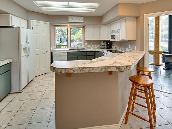 Custom, one owner home featuring energy efficient passive solar, radiant floor heat and whole house attic fan. This 3 bed, 2.5 bath great room plan lives comfortably with a main level master, updated kitchen, solarium w/ certified wood stove, (part of the passive solar), & large windows that provide an abundance of light and enjoyment of this manicured property. The .44 acre lot backs to common area, creating an allure of an even larger landscape. The master suite has his & hers closets and vanities, tiled corner shower, water closet, and sound system in the master and great room. Upstairs you will find a loft, 2 bedrooms and full bath w/ dual sinks. This one of a kind home has Central Vac, A/C, recirculating hot water, sprinkler system on timers, and an invisible dog fence. Oversized double garage with an additional 8'x8' storage room, new roof in 2019, new interior and exterior paint. This is an immaculately maintained home settled in the pines. Your piece of Central Oregon awaits.