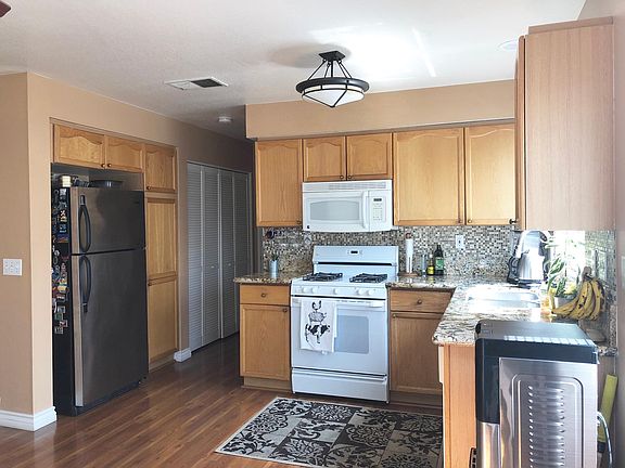Upgraded throughout and maintained down to the last detail. Energy saving LED fixtures and smart home connectivity. Granite countertops throughout the home, hard wood floors including the staircase and bedrooms. Kitchen has plenty of storage. Home has 3 Bedrooms & 2 Bathrooms upstairs. Master suite has two separate closets. Master bath has dual sinks and tub. Enjoy your backyard with lemon and orange trees and private patio with calming swing. Attached two car garage with direct access with lots of storage and a professional epoxy garage floor. Peace of mind with gated community benefits. Community has kids playground and basketball court. Property available for viewing post August 24, 2018. Tenant responsible for all utilities, yard maintainace and renters insurance.