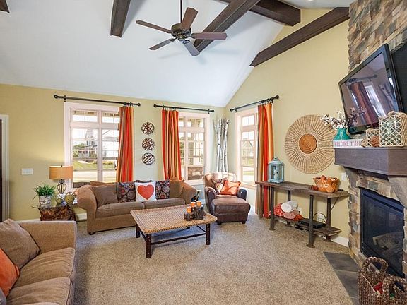 Character abounds in this custom built craftsman style story and a half at 900 Northampton Hartville, Ohio, in Danbury Glen. Quality you would expect from Rembrandt Homes! Welcoming front porch giving way to the foyer entry, which opens to the 2 story great room, offering cathedral, beamed ceiling, a stone fireplace, and a wall of windows with glass transoms. The kitchen, dinette areas are open to the great room, and provide perfect functionality incorporating a breakfast bar, planning desk, pantry, stainless steel appliances, and granite counter tops. The dining area gives way to the patio and backyard through a sliding glass door. The practical, mud room, and a first floor laundry, can be accessed from the garage entrance into the house. A first floor master suite with a walk-in closet, and a full bath offering double sinks, double shower, and a garden tub, is a tranquil respite. The second floor landing can have many uses, and leads to the two bedrooms, and the uniquely styled Jack and Jill bathroom. The full basement offers vented glass block windows, and is plumbed for a bathroom. Danbury Glen offers a neighborhood swimming pool, playground, and beautiful clubhouse.