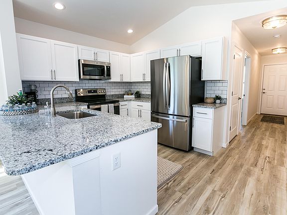 New Construction 3 bedroom, 2 full bathroom homes ready to rent! Open floor plan with lots of natural light and luxury vinyl plank flooring throughout the home. Extra wide hallways and doorways for easy access. 3 bedrooms including the master suite with walk-in shower. Your kitchen is equipped with stainless appliances, white shaker cabinetry and granite counters at your breakfast bar with vaulted ceilings leading into your breakfast room and great room. Main Floor laundry and 2 car garage. Display unit shown. Tenants are responsible for utilities. $35 Sewer Bill will be added to monthly rent and paid by landlord $1875+35=$1910. One time HOA fee $275 per year. No smoking in or around the property. No showings without first filling out Zillow Application.