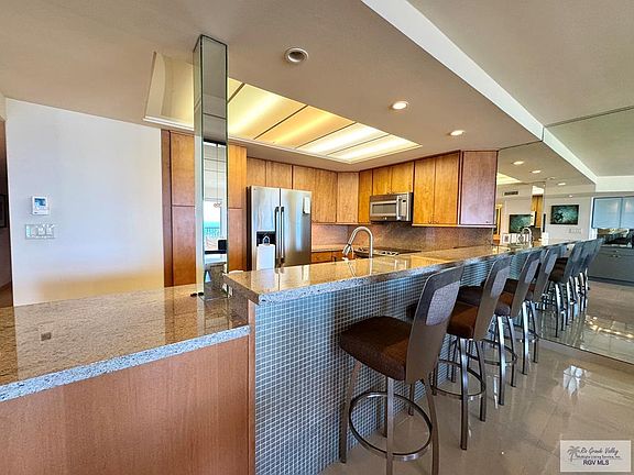 Perched on the top floor of Summit Condominiums, this 8th floor waterfront stunner offers panoramic sunrise views that are simply unmatched and a wraparound balcony that redefines indoor-outdoor living. With 3 bedrooms, 3 bathrooms, 6 beds, a private washer/dryer, sleek appliances, and a curated coffee/bar area, every detail is designed for comfort and style. The fully furnished interior blends modern elegance with coastal minimalism and for added peace of mind, the unit is equipped with storm shutters. The condo is front & center among the very best South Padre Island has to offer. Fully furnished & ready to enjoy the fruits of summer year-round. Amenities include: secured gated entries from beach & street, on-site management, 2 swimming pools, kid's play area, tennis courts, hot tub, 1 assigned covered parking space, and 2 elevators. Walk to fine dining, relax in total privacy, and experience island living at its finest. Pricing negotiable based on term. Serious inquiries only.