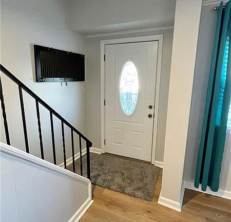Incredibly charming property in Ross Township- available in January! Water, trash, and sewage included in the rent. Entry is the front right door of the duplex. Open living room with tall windows and ceiling fan. The dining area includes built-in storage. The kitchen is complete with electric stove, microwave, dishwasher, and refrigerator - plus lots of cabinet space! Large deck off the back with steps down to the yard. Upstairs, two bedrooms with great closet space. And a full bathroom with long vanity and tub/shower! The lower level is unfinished and includes the laundry area with washer/dryer included. Also some additional storage space. Outside, enjoy a long driveway for off-street parking along the right side of the house. Lawncare is split with tenant in the other side of the duplex. Convenient location - easy access to McCandless Crossing and McKnight Road. Quick drive to I-279. Dogs will not be permitted. One cat may be considered with an additional fee. Washer/dryer in basement are included, but for convenience only and will not be repaired/replaced if they break. Lawncare is split between the two apartments (they switch weekly- push mower included in basement). Long driveway along right side of house goes with this unit. One Window AC unit included, otherwise tenant brings their own.