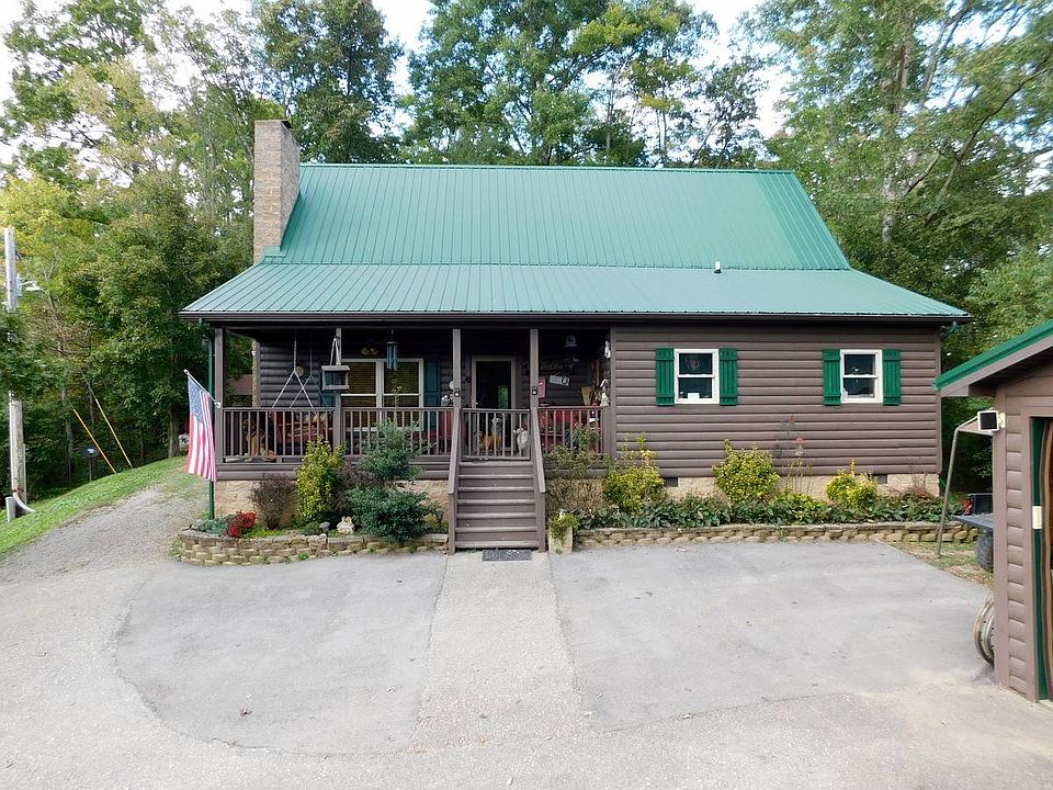 Conveniently located approximately 8 mile from West Liberty KY., 20 miles from Cave Run Lake and 20 miles from Red River Gorge. Log home sitting high on the hill for great views. The main level offers a nice open floor plan with great room with fire place and high ceiling. Beautiful kitchen with stainless steel appliances and lot of cabinets, first floor master bedroom with full bath with large soaking tub and shower and large walk-in closet. Office with high speed internet, laundry room and nice sunroom with lots of windows on back of home. Staircase lead to second floor with loft and second bedroom. Property has small guesthouse with bedroom, kitchen. Outside grilling area with inside dining room or could be hobby room. Home has CH/A with propane backup generator. Two car detached garage with double doors. Approximately 3 acre wooded lot.