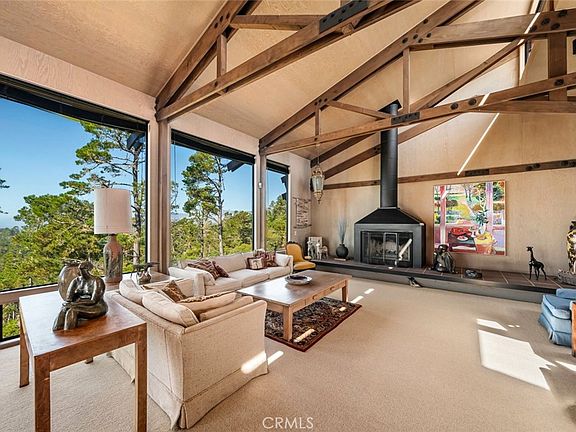 Do not miss out on this once in a lifetime opportunity to own one of the largest properties for sale in Cambria! Sit on your deck and listen to the sounds of the ocean and sea life. Gaze up the coast to see Hearst Castle and Lighthouse views...Call your Realtor today to make an appointment to see this 3700 sq. ft. home on 15.32 acres (APN 013-122-006)+ 1.21 (APN 013-122-005)= 16 1/2 acres.... right in town and bordered by ranchland. Very Motivated Seller! Never been on the market before, one family ownership! Privacy abounds with no CC+R's... Light and bright with an entire wall of windows facing 180 degree ocean views all the way up and down the coast. Set in a pine forest it has a wonderful view deck and another barbeque deck conveniently located off the kitchen. High vaulted ceilings and a very open concept equals a perfect setting for entertaining and enjoyment! There is a cozy wood burning stove in the breakfast nook next to the large cook's kitchen, with a large center island which boasts a warming oven as well as a wolf induction burner. Lots of cabinets and counter space, a six burner Viking counter top unit as well as a double Bosch oven. Very large pantry and storage area...An abundance of windows that lets the outside in. The kitchen opens into a large dining area with another wall of shelves and cabinets and storage for all your beautiful dishes and glasses. This flows into a lovely foyer were a Baby Grand piano sits....perfect for entertaining , which flows right into a large living room with a built in bar and huge fireplace. There is a built in office to the right of the living room. The main bedroom is off the office with an adjoining bathroom with a shower and soaking tub which sits next to another view window! Downstairs is the second bedroom with a nice deck and bathroom and a very large laundry/hobby room. A built in wine area and full large workshop with a 1/2 bathroom. To top this offering off we have a two car garage with an additional separate 1 car garage... and lots of extra parking area. Also comes with two active water meter on a septic so NO sewer bills ! Come see this very unique property as it won't last long!!!!