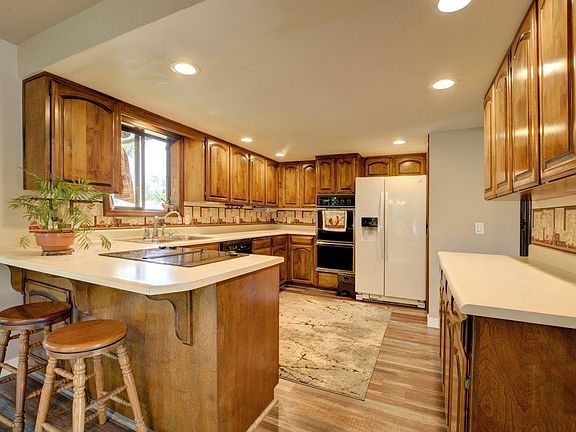 This home features a private backyard, a massive and fully fenced RV Parking area with 30 amp hookups, two separate patios, in addition to the covered outdoor patio area. The garage is oversized on all sides with a workbench area, built-ins plus more storage! Inside there is warm, rich woodwork, new flooring, two ovens in the kitchen and every bedroom is extremely large and can easily be used for a family game room or even a theater! The main floor master suite has built-ins, walk-in closet, and its own private patio. The main backyard patio has recessed lighting and a ceiling fan for that lazy summer afternoon feeling. The landscaping is meticulous with a wonder of details all the way around the property. Pleasant views out each window and overall it feels very private. Clean, and ready to go, check it out today!