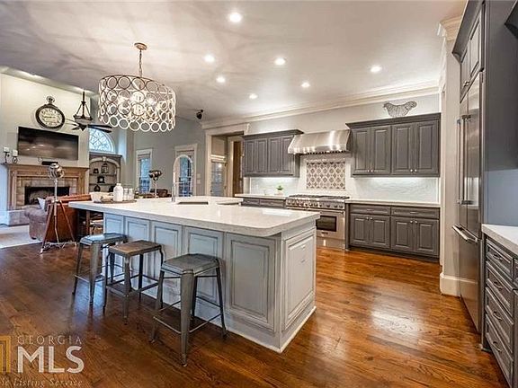 Charming home in private gated community just minutes from downtown Crabapple. Total transformation at this amazing home, starting with the beautiful black clad windows that add just the right touch of transitional design. Two story entrance features double door entry with designer light fixtures and a splash of shabby chic style. Master on main includes coffee bar, private entrance to main floor study/office, dual custom closets, and spacious master bathroom with soaking tub. Amazing two story study with tons of light, fireplace and built-ins. Fully renovated kitchen with quartz counters, Thermador 6-burner gas range with griddle, Miele coffee center, Wolf microwave and warming drawer. Fireside keeping room is super cozy and provides quick access to the covered, screened porch. Secondary bedrooms upstairs are very spacious and feature oversized closets. Upstairs flexroom / media room is perfect for home school learning! Finished terrace level with custom oak bar, media room with theatre seating, full bedroom and bathroom and entertainment area. Community is gated/guarded and includes swim/tennis amenities.