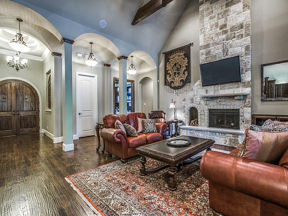 Opportunity! 4,690 sq ft single story on 2.3 acres in Lovejoy ISD. The N-facing cul-de-sac private tree-lined lot offers expansive grn space in addn to pool, patio & entertainment areas. Step thru arched dbl doors & experience 21ft vaulted ceiling spanned by heavy oak timber trusswork. The cavernous kitchen, dining & living echo old world, Great Hall concept. Bedrms include spacious mstr suite w oversized 3 valve shower, 2 secondary beds w en-suite bath & gym or bed 4 w natural finish bamboo floor. Office anchored by commanding wood bookcase. Gmrm w both wet & wine bar adjacent to media. Host the party w four outdoor entertaining areas, outdoor kitchn, FP, plus poolside pavilion. 4 car gar complete w half bath.
