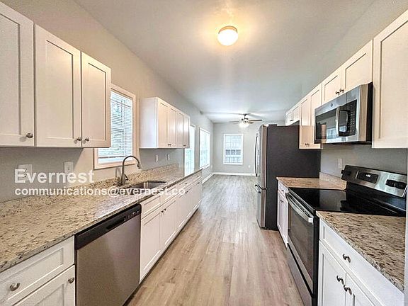 This spacious single-family home offers 1,584 square feet of versatile living space featuring four bedrooms and two and a half bathrooms. The property comes equipped with a variety of modern amenities designed to support a comfortable lifestyle. The kitchen is outfitted with stainless steel appliances, including a refrigerator, stove/oven, and dishwasher, making meal preparation and clean-up efficient and hassle-free. Climate control is made easy with air conditioning and a ceiling fan, ensuring your comfort in any season. Additional features include off-street parking for convenience, and laundry hookups that allow you to manage laundry needs readily from home. Outdoor spaces such as the front porch, deck, and a lawn provide opportunities for relaxation or outdoor activities. The home is finished with durable laminate plank flooring throughout, which is both stylish and easy to maintain. This rental is designed to offer ease of living with modernity and practicality at the forefront. 1 Gig internet service for $65.95/month. Please confirm service availability with our team before activation. Pets: Yes to dogs and cats. 2 max. $25/month for pet rent + $325 pet fee. Residents are responsible for all utilities. Application; administration and additional fees may apply. Pet fees and pet rent may apply. All residents will be enrolled in the Resident Benefits Package (RBP) for $49.99/month and the Building Protection Plan for $11/month, which includes credit building, HVAC air filter delivery (for applicable properties), utility setup assistance at move-in, on-demand pest control, and much more! Contact your leasing agent for more information. A security deposit will be required before signing a lease. The first person to pay the deposit and fees will have the opportunity to move forward with a lease. You must be approved to pay the deposit and fees. Beware of scammers! Evernest will never request you to pay with Cash App, Zelle, Facebook, or any third party money transfer system. This property allows self guided viewing without an appointment. Contact for details.