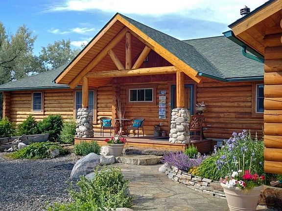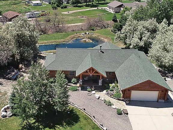 Builder's own custom home with natural custom wood accents and extra special showcase features. Built with 9" logs. One of a kind in Laurel.Country setting next to town has natural habitat for neighborhood deer, ducks, pheasant, etc. You won't have to leave home to feel like you are on vacation. Wrap around covered deck lets you enjoy the view overlooking the pond. And the shop...plenty of room for equipment, RV, toys and a heated & finished workshop inside with bathroom. Home has a kitchen set up in basement for home based cottage business .Features include:covered decks with logs truss and posts, river rock accents, tongue & groove blue stained pine, conferred ceiling master, steam shower, jetted tub, radiant floor heat in garage, master bath, and basement. Sun room, wired for sound, hot/cold exterior faucets, gas hook up on deck, outdoor "tiki" bar & firepit and more.MUST SEE!