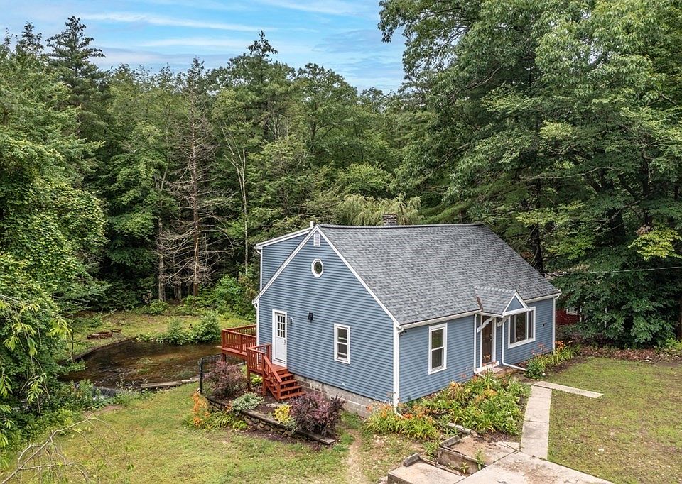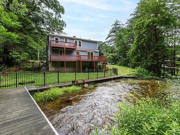 Perfectly situated along Scott Brook, this mid century cape offers the tranquil sounds of water and nature views all year-round. Enjoy the privacy of a wooded backyard with a large multi-tiered entertaining deck. You will also own your own bridge that crosses over the water to explore the many trails of Falulah Park. This spacious 3 BDM, 2 Full Bath home abuts the Crocker Conservation land. The spacious primary suite encompasses the entire second floor and includes a walk in closet, large en-suite bathroom with a jetted soaking tub, double vanity as well as a private balcony looking out to the wonderful views. The spacious sunny kitchen is equipped with custom cabinetry and stainless steel appliances. Its large windows and sliding glass door evoke the presence of nature. New roof done in 2022 and exterior paint in 2023. Close to Rt 2 and Rt 13 for easy commute to work and tax free NH. Conveniently located 5 minutes drive to all amenities of Fitchburg, this home is a perfect retreat.