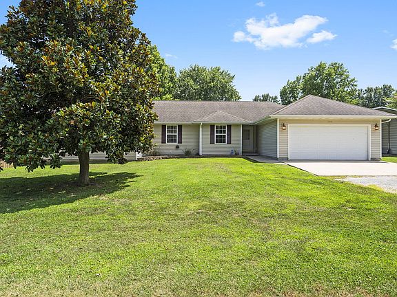 Welcome to the great city of Aurora, MO where you will find this little over 2,900 sq ft all vinyl home nestled in a pristine location in a non HOA community. Less than 5 minutes away you have all your local restaurants, gas stations, local bank, fitness center, Mercy Hospital Aurora, car dealerships, Walmart, Aurora schools, etc. With four bedrooms, three full baths, and one non conforming room you will have an abundance of space to accompany. The flooring throughout is made up of carpet, tile, and brand new laminate. The main living area leads straight into the kitchen where there are plenty of cabinetry, well maintained countertops, and appliances that all stay with the purchase of the home. Located off to the right of the kitchen is the one of the two masters suites. Down the hall you have two additional spare rooms with deep closets for all your essentials. Through the hallway you find high ceilings, rock propane fireplace, sink, dishwasher, and more. The secondary primary suite contains a jacuzzi tub, tile walk in shower, huge walk in closet, and your own storm shelter. The non conforming bedroom would make a great addition for a home office, children's play room, storage area, and more. Through the tall sliding glass doors you're greeted with an oversized yard with a 6 foot privacy fence making it ideal for all activities and accommodations. Enjoy having people over for cookouts, swimming pool parties, and yard games. The covered back patio makes it nice for evenings to sit back and relax while being covered from the elements. Need additional parking besides the attached two car garage? Enjoy the luxury of your own detached additional two car garage located behind the house with also an RV carport. Home has been well taken care of in its current owner's possession and has less than a 5 year old roof to accompany the next new homeowner. Take a drive to Aurora, MO and see for yourself what this town has to offer! Go DAWGS!