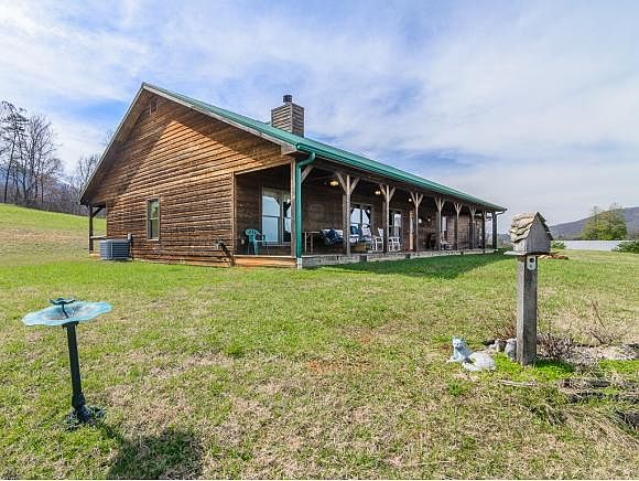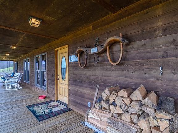 This is truly a "Gentleman's Farm". Custom built home completely handicap accessible. This hilltop home has beautiful mountain views and a great front porch where you can sit and enjoy those views or wildlife. Great room has cathedral ceilings, stone fireplace. Kitchen has hickory cabinets, solid surface counter tops. Flooring through out the house is hickory. Split floor plan with two bedrooms with walk-in closets and large bath. Master suite has spacious walk-in closet, large bath with two vanities. Off the garage is a mud/laundry/office. Garage is finished. Porch length of rear of house with a stone grill. There is a creek on the east side. Land is mostly cleared and cut for hay. Barn has an 832 SF one bedroom apartment attached. Barn also has a half bath and a canning room. 1/2 acre spring fed pond. Entire acreage is fenced.