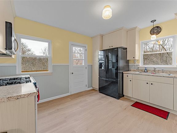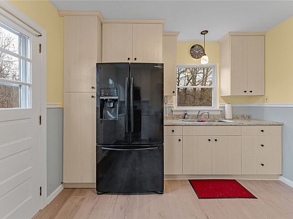 Nestled at the end of a quiet cul-de-sac street, this two bedroom, two bath home has been beautifully renovated and is ready for its new owner. Sit outside on one of the two brand new decks and enjoy the privacy of your 1.64-acre wooded lot. The kitchen has brand new cabinetry and flooring with an abundant amount of storage and natural light. The brand-new asphalt driveway provides ample parking, while the roof, garage door opener and hot water heater are new in 2022. Take advantage of the large walk-out basement for a game room or extra living room space, complete with built-ins for added storage, a full bathroom and washer and dryer hookup. This home provides you with a feeling of seclusion while still being close to city conveniences. Don’t miss this one!