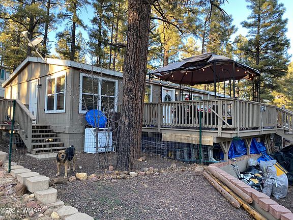 Central location in Show Low, this charming 3 bedroom doublewide features a spacious deck & open floorplan. Located directly across from a community park, this home sits high amongst the pine trees. Affordably priced, you can make it your Mt dream