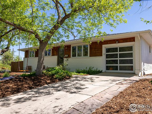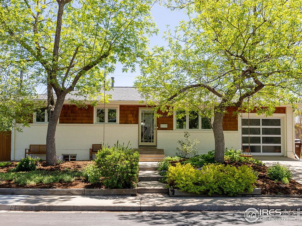 Welcome to a uniquely-situated home in a rarely available South Boulder location. This turnkey property boasts abundant natural light, streaming from skylights through a vaulted kitchen with exposed beams, looking out on a tranquil backyard and park. The house sits higher than adjacent properties, and with few immediate neighbors, offers expansive views of sun and sky all day. The downstairs area is equally inviting, featuring numerous large egress windows that fill the rooms with light, like a garden level space. Enjoy three bedrooms up top and two downstairs. Ample closet space and storage solutions make this home efficient and livable.One of this property's standout features is its location backing to the park and nearby open space: Take advantage of easy access to the park through the backyard's side gate. Privacy is paramount in this home, with only one immediate neighbor to the south, whose property faces away towards the creek. The living room, front bedrooms and basement front bedroom offer clear views of the Flatirons and Devil's Thumb. Pop the top for truly epic mountain views. The backyard is an oasis, perfect for hosting gatherings. The deck is shaded in the afternoon and evening, making it ideal for entertaining large numbers of guests. The yard features irrigated planter boxes, fruit trees (cherry, plum, two apple, two peach), kids' play area, fire pit, and completely updated deck and pergola. The two mature trees in the front yard provide perfect summer shade and burst into stunning fall colors. The work has lovingly been put in on this home, so you can move right in. Updates include new/recent exterior and interior paint, redone hardwood floors, and new wood stairs to the basement. Have an EV? Plug right in to the new level 2 charging station and enjoy. Don't miss the opportunity to own this extraordinary property, offering a feeling of warmth, privacy, openness, and a welcoming neighborhood.