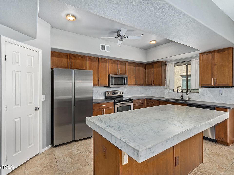 You're going to love this rarely available, charming 3 bed 2.5 bath tri-level townhome perfectly situated in Chandler! Come inside and discover the spacious great room showcasing high ceilings, custom paint and fixtures, sliding doors to the balcony, tile flooring, & soft carpet in the living area. The kitchen features built-in appliances, ample cabinetry, a walk-in pantry, and an island with a breakfast bar. The primary room boasts a wood accent wall & an ensuite with walk-in closet & dual sinks. Enjoy the lifestyle that the Via Del Cielo Community provides offering amenities with 2 Refreshing swimming pools, walking trails, & playgrounds. near Chandler Fashion mall, close to freeway access, restaurants, and entertainment! Don't miss this fantastic opportunity!