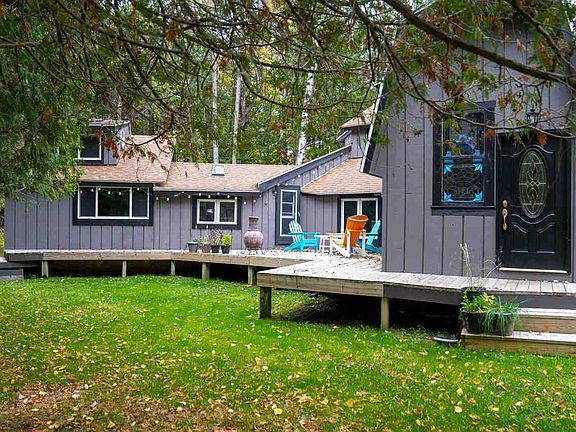 Unique, handcrafted, cozy, and charm all come together in this one of a kind property. Wildlife surrounds you on the private and wooded 2.5 acres parcel with a quaint dirt drive. Inside and out you'll find special details that add to the character of this home. The main living area and kitchen are fun and inspiring with an open layout. Special features include hand crafted cabinets, stained glass, skylights, stone fireplace, open beams, and a hand carved railing leading to the loft area. Even the detached 1.5 car garage has its own style. Make this your main home, a cool up north getaway, or maybe a distinctive rental.