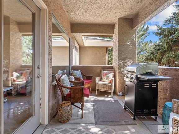 Best value in the sought-after Tanamera community! Welcome to this charming condo nestled in a private, park-like setting surrounded by trees within the luxurious Tanamera Resort in South Reno. This prime location offers easy access to the pool and clubhouse and is conveniently close to the entrance with ample parking available around the unit. The interior boasts a light, bright, and open floor plan featuring two master suites, each with walk-in closets and situated on - see ext. remarks, opposite sides of the homemaking this an excellent layout. Both the living room and bedroom open to a large private covered balcony, perfect for unwinding and enjoying the serene surroundings. Modern updates include fresh interior paint, a gas fireplace with an updated surround, dimmer switches, and stainless-steel appliances. The condo also features attractive cabinets, an upgraded 75-gallon hot water heater, and professionally cleaned air ducts for added comfort. Additional features include the luxury of an attached garage with extra storage space and a laundry room equipped with additional shelving for storage. This condo offers a perfect blend of luxury, convenience, and privacy in a beautiful resort setting. Don't miss the opportunity to make this your new home! Tanamera is a gated resort community with a lovely lagoon style pool, two spas and state of the art gym with two racquetball courts, saunas, and Pilates equipment. Impeccable grounds with easy access to wonderful walking/bikes paths, 15,000 square foot clubhouse, lounge/movie room, business center and convenience of daily trash pickup, water and sewer included in HOA. Close to grocery shopping restaurants and hospitals. Your home will feel like a permanent vacation! Please see private remarks