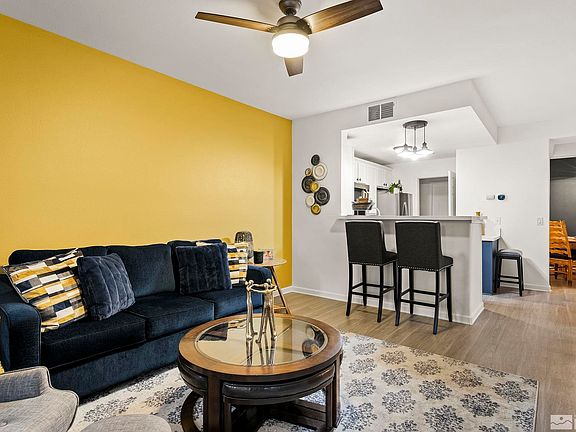 Welcome to your move-in ready oasis! This exquisite 1-bedroom, 1-bathroom condo is a dream for those seeking ease and comfort with top-notch amenities. Revel in a modernized kitchen boasting new white countertops and a gas stove, perfect for culinary adventures. Fresh newer carpet and paint set the stage for your personalized decor touches. The home is being offered furnished to make it the ideal turn-key property (The dining table and chairs do not stay, along with a few other pieces)., Unwind by the warmth of your gas fireplace in the inviting living room or indulge in a relaxing soak in the spacious bathroom's large jetted tub. With a laundry room conveniently located off the kitchen, chores become a breeze. Step outside onto your covered private patio, a serene retreat for entertaining or quiet contemplation. This gem comes with a 1 car garage with overhead storage, and another locked storage area outside the front door. The HOA dues cover sewer, water, and trash—simplifying your lifestyle. Don't miss the chance to call this turn-key haven home!