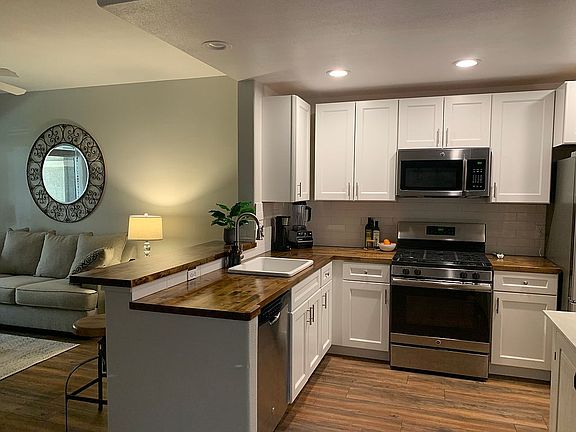 Beautiful condo… 1bed/1bath plus separate office/den area! Completely remodeled top to bottom. New floors throughout, new paint, cabinets, countertops, appliances, and lighting. Separate laundry room, with coat/bench nook. Open kitchen with eat-in bar area, gas range, and pantry. Bedroom has walk-in closet. Includes large outdoor storage unit, just 2 steps from front door! 1 car attached oversized garage (18ftx23ft)with private entrance into condo, has plenty of room for bikes, kayaks, sporting gear and extra storage. Large quiet patio looks out over the courtyard…no traffic going by! In gated, sought after community, this unit is located in the back of the complex steps away from the South Meadows Trail system walking paths and bike trails! Beautifully landscaped, “Tanamera” has an outdoor heated pool and hot tubs open all year, completely outfitted gym, racquetball courts, and Pilates equipment! HOA covers all amenities, water, sewer, and trash. Ready to move in! By owner.