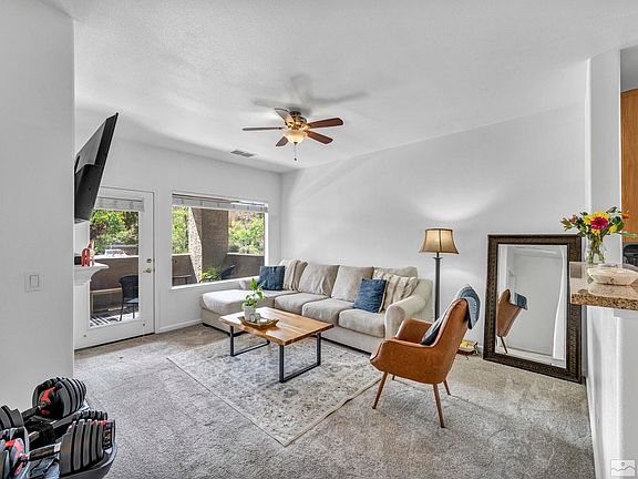 Welcome to the highly sought-after Tanamera community, where luxury living meets convenience. This gated community offers a wealth of amenities, including a sparkling pool, relaxing hot tub, private movie room, state-of-the-art gym, rejuvenating sauna, and a racquetball court. The lush landscaping and ample guest parking throughout the community enhance the experience. Walking trails, shopping center, restaurants and hospital located nearby., This beautifully maintained, move-in ready home features two spacious master suites, each with its own walk-in closet and private bathroom. The kitchen boasts elegant granite countertops, a breakfast bar, and an included refrigerator, perfect for cooking and entertaining. Step out onto the balcony and take in the breathtaking mountain views, adding a serene touch to your everyday living. This home in Tanamera offers a perfect blend of luxury, convenience, and stunning surroundings—don't miss your chance to