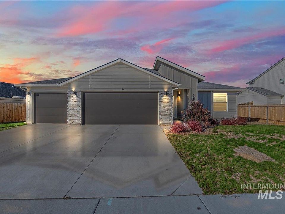 Welcome to this beautiful 3-bedroom, 2-bathroom home nestled on a spacious lot in one of Mountain Home's most sought-after neighborhoods. Located just minutes from Airbase Road and a quick 15-minute drive to MHAFB, this home combines convenience and charm, making it the perfect place to plant roots. As you step inside, you'll be greeted by a warm and inviting open-concept layout that seamlessly connects the kitchen, living, and dining areas—ideal for hosting friends or enjoying cozy nights in. The split-bedroom floorplan offers privacy and comfort, while the additional den/office provides a flexible space for work, hobbies, or relaxation. The oversized 3-car garage is perfect for storing all your essentials, and the backyard is a blank canvas, ready for you to design your ideal outdoor retreat. Whether you envision a lush garden, a play area, or a tranquil patio, the possibilities are endless. This home is more than just a house—it's your opportunity to create memories and truly feel at home.
