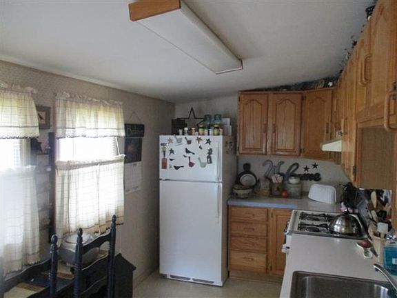 Larger than it seems! Enter the Spacious Living room with decorative Brick fireplace. Dining room leads into Kitchen with Gas Stove & refrigerator that stay. Home has Central air & Gas Heat. Covered porch leads to large fenced yard with Carport and shed that stays. FullBasement with washer and dryer hook ups. Roof is just 2 years old!