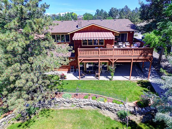 Must See! Beautiful chalet-like home overlooking Alkali Creek Valley. Plenty of natural light with large windows and sliding glass doors on main and lower level. Sunken Living Room. Large pantry with option of utility hook-ups for washer/dryer on main level. Established large laundry downstairs with spacious storage room. Spa tub lower level sun room. Big deck with awning and sizable patio below. Master with walk in closet. Stunning views throughout home with mature landscaping and an UGSP.