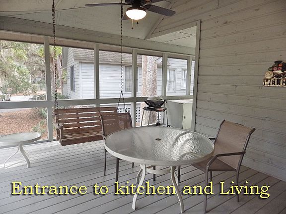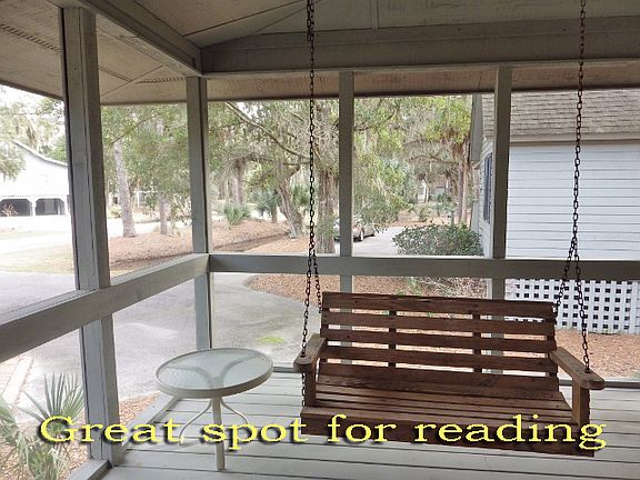 The perfect home at Edisto!! 3 Bedroom, 2 Bath furnished single family home with only 8 steps to main level. The perfect home for those who don’t prefer steps and want the living area all on one level. This custom villas features new large patio doors, solid panel interior doors, ceramic tile in baths, heart pine floors throughout kitchen, living, and dining area, Custom kitchen cabinets, gas fireplace with built-ins, appliances and interior carpet recently replaced, large screen porch on entrance with access to kitchen and living area, and spacious sundeck overlooking natural foliage and golf course. You will think you have found heaven on earth when you relax on the sundeck and watch the amazing sunsets and listen to the sea breezes. Home is in an association so all exterior maintenance, grounds, maintenance, and insurance are taken care of so you can just come down and relax! Home is tucked among large live oaks to provide privacy on both the sun deck and screen porch. Home is located in gated community providing security and is only a short walk to golf pro shop, marina, Bay Creek Park, Sound Beach, and restaurants.