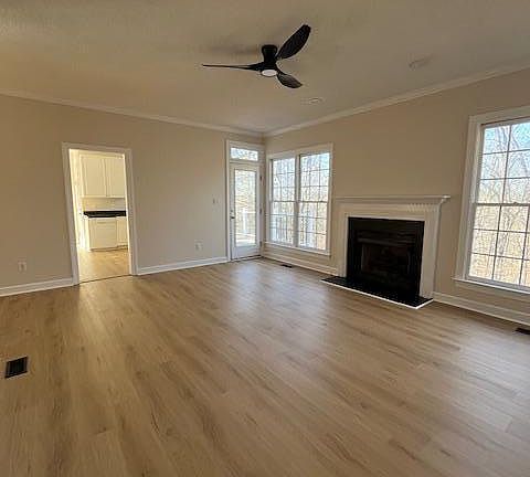 Large home in Holly Springs just remodeled! Brand new carpet, LVP wood look flooring, freshly painted, and brand new deck! Spacious living room with gorgeous natural lighting. Kitchen with eat in area PLUS formal dining room. Upstairs has main bedroom with walk in closet and bathroom separate shower and garden tub. Other two bedrooms with closets and main hall bathroom. BONUS room perfect for office, gaming, or extra storage. Fall in love with the view from your brand new deck off of kitchen. Call and schedule a tour today!