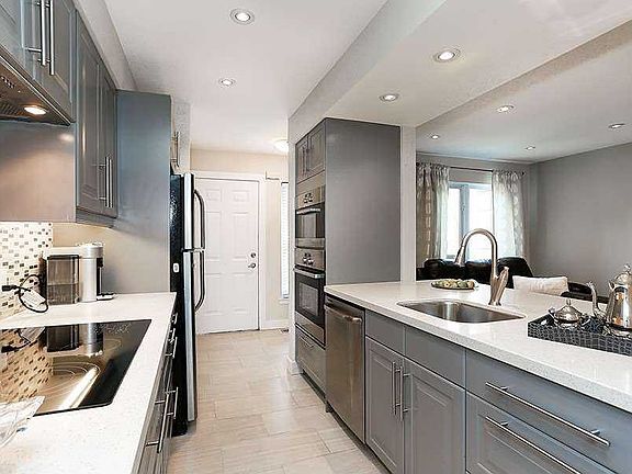Prime Location!Built By Tridel, Bright,Open Space,Renovated Townhouse,Around 1800 Sq.Ft.Living Space( Including Basement),Gated Community,24Hr Security,Beautifully Renovated Kitchen With Quartz Counter Top,Hardwood Floors On The 1st Floor,Large Master Bedroom With Walk-In Closet And Renovated En Suite Washroom, Walking Distance To Shopping,Transit,Grocery Stores.