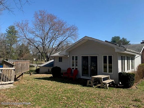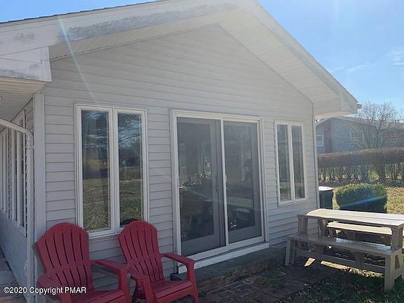 STROUDSBURG School District. NO DUES!!! 3/4 bedrooms 3 full bath Family HOME with Updated kitchen, hardwood and tile flooring. Plus Andersen windows, Two natural fireplaces, one brick, the other stone. Beautiful four-season sunroom, to Live, Love and Laugh in all year long. Natural Beams, vaulted ceiling, plus operational skylights. Huge paved Parking Driveway, Garage, POOL and Fun TIME Back Yard!! Close to town, at-home business allowed, please call township for exact confirmation.