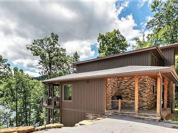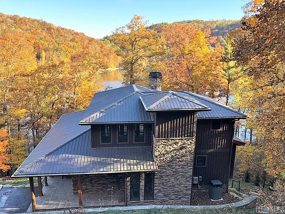 This is a rare opportunity to purchase with furnishings and tritoon boat, one of the newest-built homes on Lake Glenville. C/O in 2018, this 4 bedroom, 4.5 bathroom custom home was handcrafted with premium finishes and a thoughtful design, down to the smallest detail, making this the perfect luxury lakefront family retreat. The main level offers a bright, open floor plan, from the kitchen to the dining to the living room, with fabulous vaulted, tongue-and-groove ceilings, Hickory hardwood floors throughout, a wall of windows for views of the lake, and one of the most impressive stacked stone, wood burning fireplaces you will see. The kitchen offers plenty of cabinet and countertop space, three KitchenAide chef ovens, and a gas range cook top. Around from the kitchen is a generous-sized laundry room with extra storage and the main-level powder room. Also on the main level is the owner's bedroom, with a generous en-suite bath and heated floors. The main-level deck with a fireplace is a fabulous place to unwind or dine, and it can be accessed from the main living room and owner's suite. Upstairs you will find a roomy Loft, currently being used as office space, and another private bedroom with en-suite bath. On the lower level, you enter another large entertainment/living room space - perfect for guests to hang out - complete with another fireplace, a kitchen with a wet bar, and a third bedroom with en-suite bath. On the other side of this level is another bedroom with a large, full bath around the corner. There is another full-sized deck off the lower level, and you can take the stone path down to your very own, private 18x20 custom dock. There is a full-house generator, four-zone HVAC, wi-fi light switches, and four wi-fi access points. Other touches to the home, tankless recirculating hot water system, smart home auto water shutoff, whole home water filter system. The county tax records has the approximate sqft at 3,794. https://www.youtube.com/watch?v=kJm6Ovg_iyU