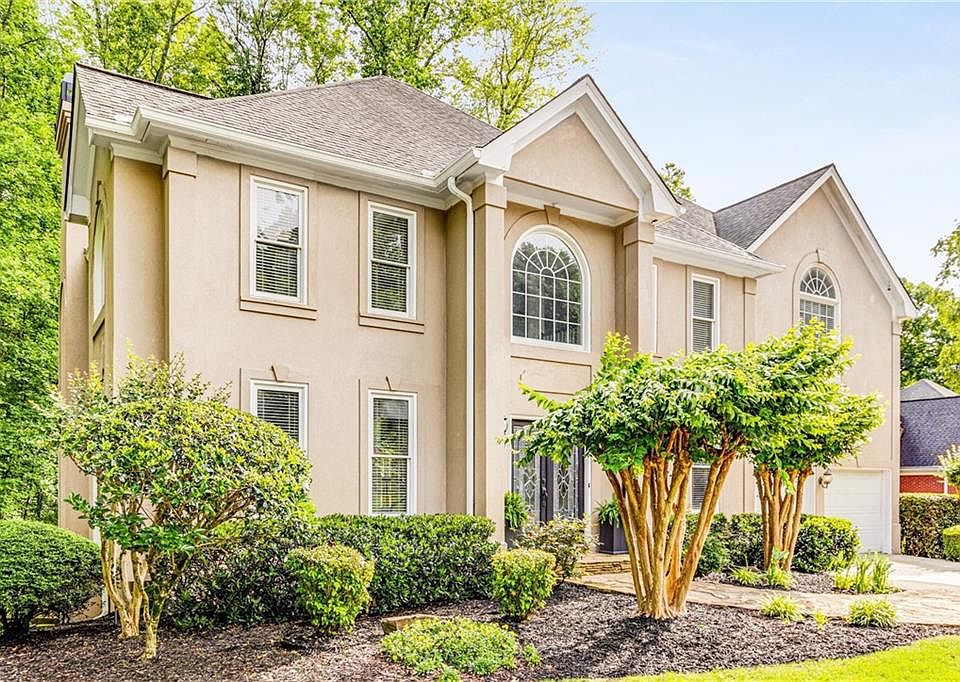 Located in the picturesque Park Forest community, this European/Traditional home offers luxury, privacy and convenience. Situated on a generous corner lot, this was the former model home for the neighborhood. As you enter the property via an elegant curved driveway and beautifully landscaped yard, you are welcomed through double front doors into a two-story foyer. A spacious office/living room is to the left, and an expansive dining room is to the foyer right. There are newly finished dark hardwood floors and 10' ceilings throughout the main floor. As you walk past the stairs to the right, you enter an expansive family room with fireplace, open to the kitchen and eating area -- all overlooking the stunning landscaped backyard via an enormous deck. There is a pretty half bath and large laundry room with sink at the right wing of the home, near the doorway to the two car garage. The upstairs includes four bedrooms, of which two share a jack and jill bathroom and another has a private full bath. The primary suite includes a spacious sitting area, private his and her bathroom suite, his and her closets and a spacious bedroom area. The terrace level includes a kitchen, full bathroom and several common spaces that could be used as a theater room, game room or another private bedroom. This well appointed property offers private luxury, as well as convenience to the elegant shops and restaurants at Avalon, and the lively downtown Alpharetta city center. Enjoy walks on the Alpha loop and numerous nearby trails, parks and schools. This home presents a perfect blend of style, comfort and location, making it an ideal choice for those seeking a peaceful residence with charm, sophistication and convenience.
