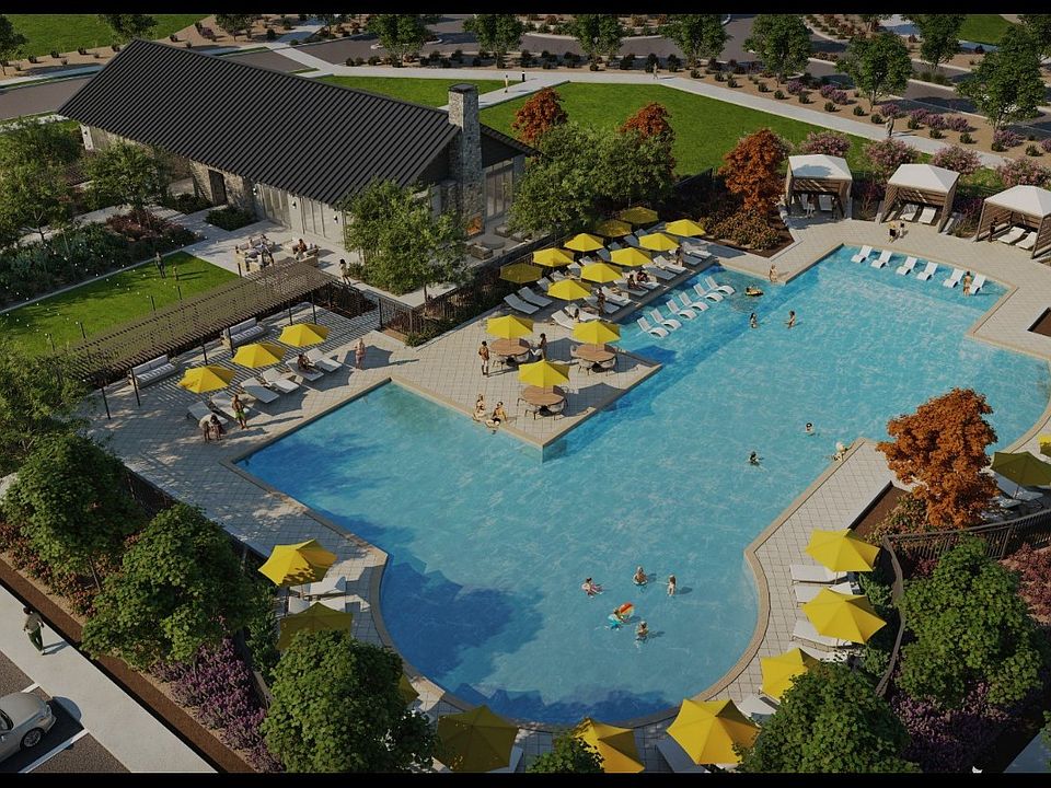 Extended patioBeautiful quartz countertopsOversized corner lotElegant backsplashCommunity lazy riverDouble ovensCommunity resort-style pool