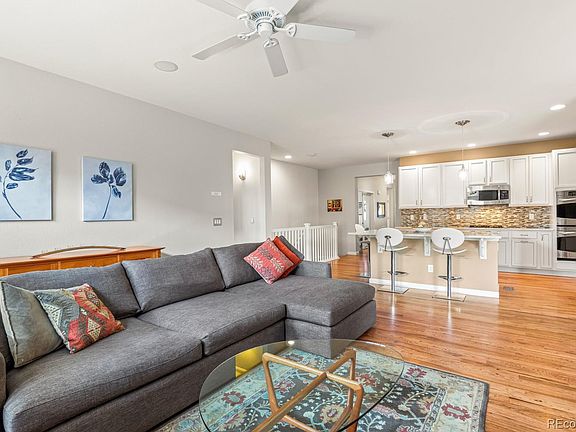 This meticulously cared for home, located on a corner lot, greets you with a professionally xeriscape yard with blooming perennials. The large entryway leads into the bright and open great room with warm hickory wood floors throughout. The gourmet kitchen, with double ovens, gas cooktop and massive quartz island, is perfect for entertaining, as something is always happening in the kitchen! The kitchen flows into the living room where you can cozy up to the gas fireplace on cold nights. Step outside and enjoy your morning coffee under the covered backyard patio and listen to the birds sing. Also on the main level, the master bedroom w/attached 3/4 bath and walk-in closet, a 2nd bedroom, full bathroom, office with french doors and laundry room. The basement is finished with a 3rd bedroom w/walk-in closet, 3/4 bathroom, family room, rec room and plenty of room for storage. You are a short walk to Downtown Louisville.