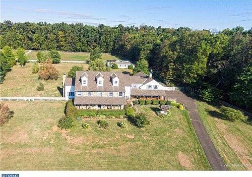 View website: http://900upperstumprd.AgentMarketing.com - Enter this 11.10 acre property down a long tree lined driveway that leads to the four bedroom center hall colonial with full length front and back porch that afford views of this beautiful property. Abutting the gracious entry hall, are the spacious living room and dining room with chair railing. Enjoy the fully equipped kitchen with granite counter tops, an abundance of cabinets, pantry and breakfast room that has French doors that lead to the rear porch. Completing the first floor is a large 40x15 foot great room with stone fireplace as focal point. Upstairs, there are four bedrooms. The spacious owners' suite with sitting area, two walk-in closets, bath, a dressing room/office, opens to the rear balcony. The second bedroom also has an entry to the balcony. Two additional bedrooms, and laundry room complete the second floor. A covered breezeway leads to a three car garage that has stairs that lead to an unfinished room over the garage that is plumbed for hot and cold water. The backyard is completely fenced and has peach, pear and apple trees. The owner has utilized the hobby building as a barn with heated tack room area with electricity, hot and cold running water, two stalls and hay room. If you don't have horses the hobby building can be repurposed for other animals, a workshop or other possible uses. Property has two fenced pastures and a paddock. There is access to an abundance of riding trails in back of property that go for miles with minimal road crossings. Lake Galena is 1 mile away where you can ride, hike, bike or boat. The train station in Chalfont is eight minutes away allowing for an easy commute to Philadelphia. A stunning private retreat.