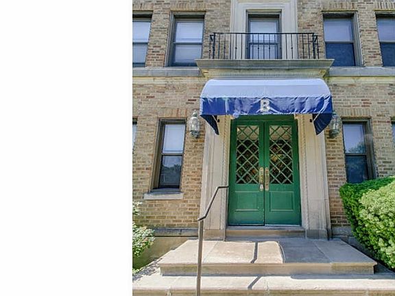 Spacious ground level condo with easy access through private entry in the back of the building. Large living room has beautiful hardwood floors and recessed lighting with dimmers. Updated eat-in kitchen has oak cabinetry with built in breakfast bar. Substantial master bedroom with big walk in closet. Plenty of room in the 2nd bedroom which can also be used as an office. Condo has two full baths and laundry inside the unit. Additional storage unit in basement. Well maintained building & grounds. Just a short walk to the Melrose Park train station. PETS WELCOME! Welcome home!