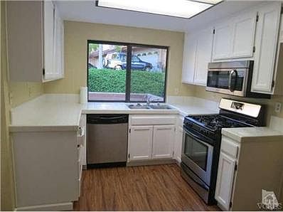 This Camarillo Springs townhome with high ceilings has a prime end unit location which shows off the natural light in this beautiful home. New rich brown wood laminate floors downstairs, new interior paint, new microwave, new baseboards, new roll up garage door & opener and new bathroom countertops. Great floorplan has 2 master suites upstairs with vaulted ceilings, 1 has walk-in closet and spa tub. Neutral upstairs carpet is about a year old. This unit is adjacent to greenbelt area and 1 guest parking spot. Close to pool, club house and additional guest parking. Move in ready!