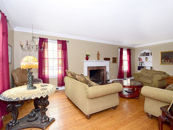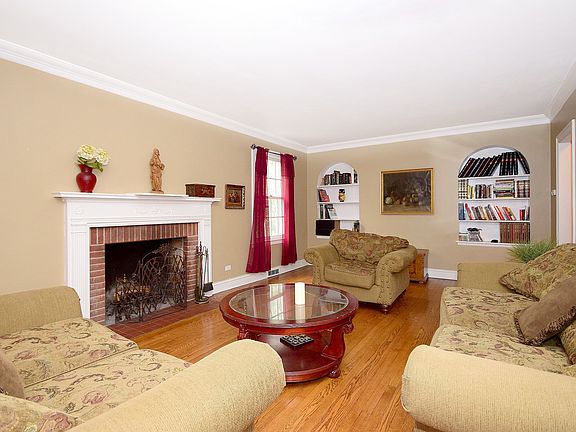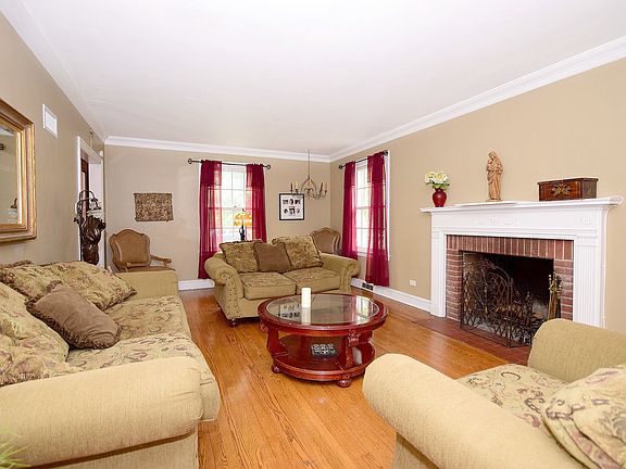 Expanded Brick Cape Cod with 1st floor addition on huge 177 deep corner lot. Large granite kitchen with island and eating area that leads out to paver brick patio and private yard with mature professional landscaping. Huge formal living room with wood burning fireplace, large formal dining room with twin built-in cabinets. Circular floor plan to 1st floor family room off dining room and kitchen. Oak hardwood floors. 2nd floor has master suite with walk-in closet and bathroom with tub and separate shower. Hall bath and 2 additional bedrooms on 2nd floor. Finished basement with 4th bedroom or office, full bathroom, laundry/storage room, flood control with battery backup and recreation room with fireplace. Lawn sprinkler system. Trane furnace and AC 2012, hot water tank 2009. Newer 2.5 car detached garage off alley with side parking pad.