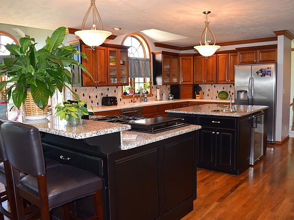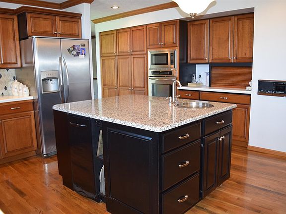 This amazing custom built walk-out Ranch sits on a cul-du-sac in SW Newton. The upper level has an elegant master with private balcony, a spacious on-suite with a jacuzzi tub, his & her sinks, & plenty of storage. There is another bedroom, formal dining room, half bath, mud room with extra cabinet space, large office with french doors & a bright 4 seasons room that walks out to a deck. The stunning gourmet kitchen has gorgeous granite counter-tops, stainless steel appliances, wine refrigerator, a breakfast nook surrounded by large windows & french doors that open to another balcony. It also opens to the family room which features beautiful built-ins & a wood burning fireplace. The lower level has 3 spacious bedrooms, 2 full baths, a laundry room with storage, a rec. rooms with a refreshment center & built in wine rack, & another family room with fireplace that walks out to a covered patio.